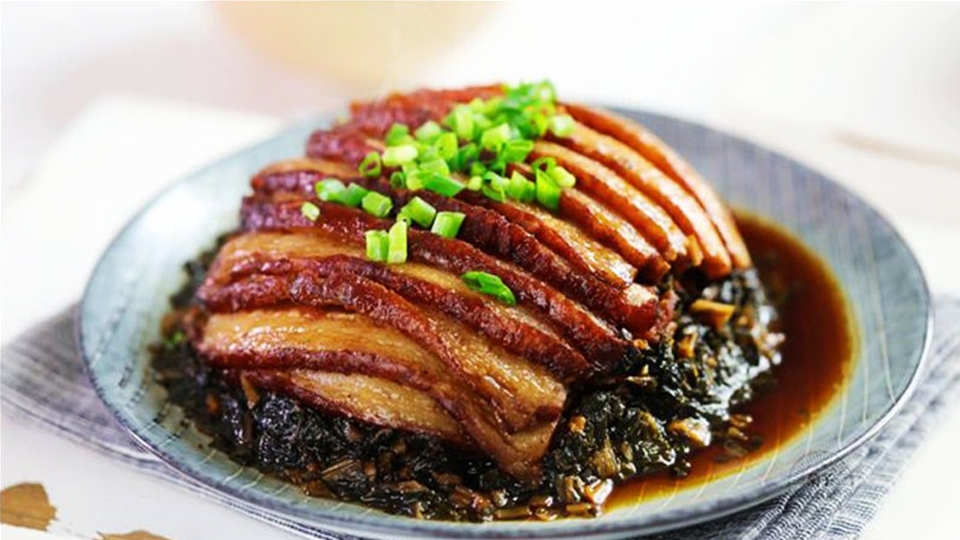 Thịt ba chỉ hầm mềm tan với tương đen và gia vị đặc trưng Lạng Sơn