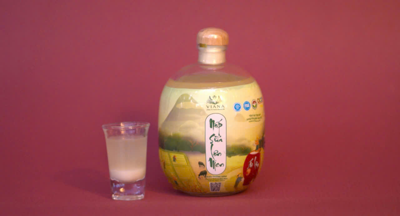 Rượu nếp sữa VIP – phiên bản cao cấp của VIANA. Ủ lâu hơn trong điều kiện kiểm soát chặt chẽ, hương vị tinh tế và phức tạp hơn. Đóng chai sang trọng, phù hợp làm quà tặng cao cấp.